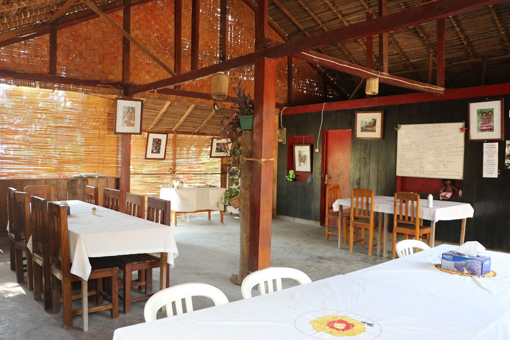 Manucoco Rek consists of a Restaurant and Guesthouse located in the heart of the island’s capital Vila Maumeta. The restaurant and the guesthouse was established with the support of an Italian Catholic priest and run by a group of women cooperative. The restaurant provides both Italian food such as Spaghetti, Tagliatelle, Gnocchi (hand made), pre-order Pizza as well as traditional Timorese food. The guesthouse reflects the island’s traditional bungalows for both single and family travelers. The accommodation ranges from thatched huts with shared bathrooms, to larger rooms with private bathrooms. Rooms are equipped with fans and mosquito nets. The establishment includes a small library with limited resources, and snorkeling gear provided to guests to ensure they do not miss the beauty of the Vila Maumeta water which just a few meters away. It is centered in the middle of 2 souvenir shops (Boneca de Atauro and Biojoia) for people who want to shop for some the island’s typical souvenirs. With basic foreign language skills and friendly service from staff, all guests will feel right at home.